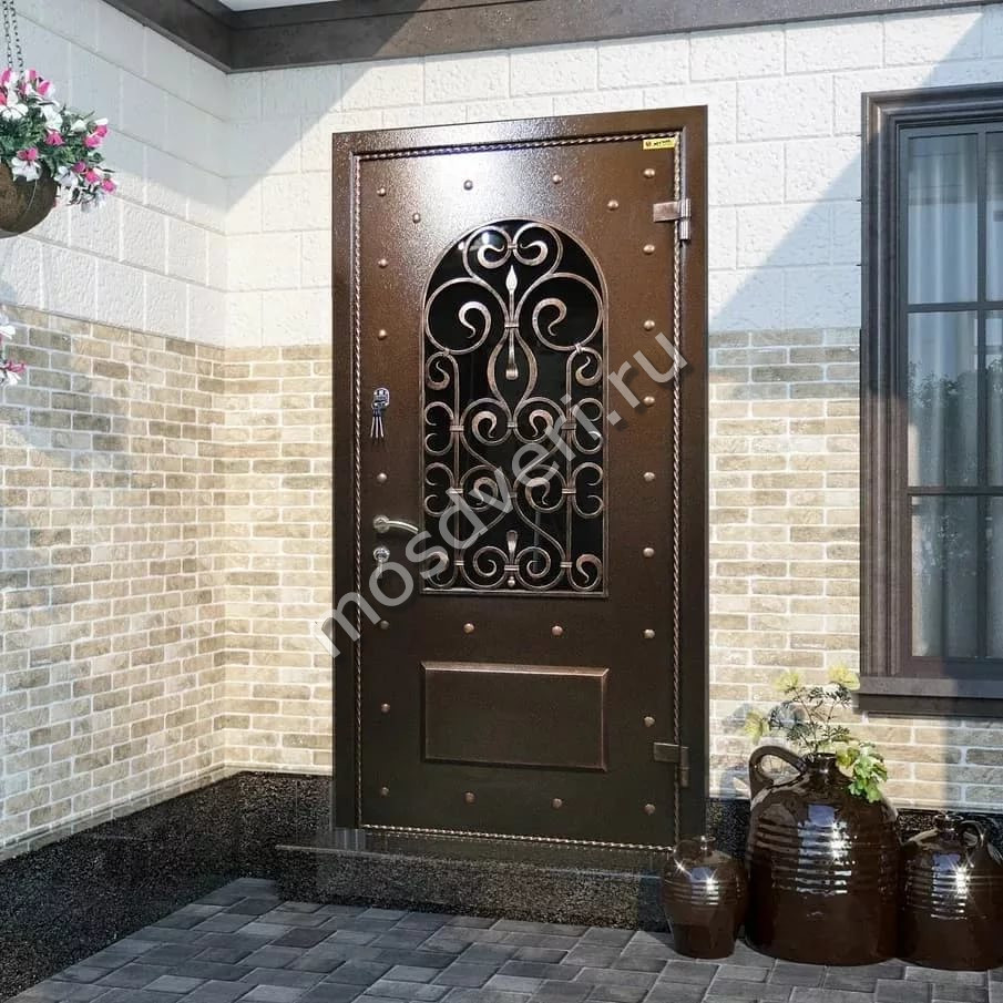 Входные двери со стеклом и ковкой в Рязани
